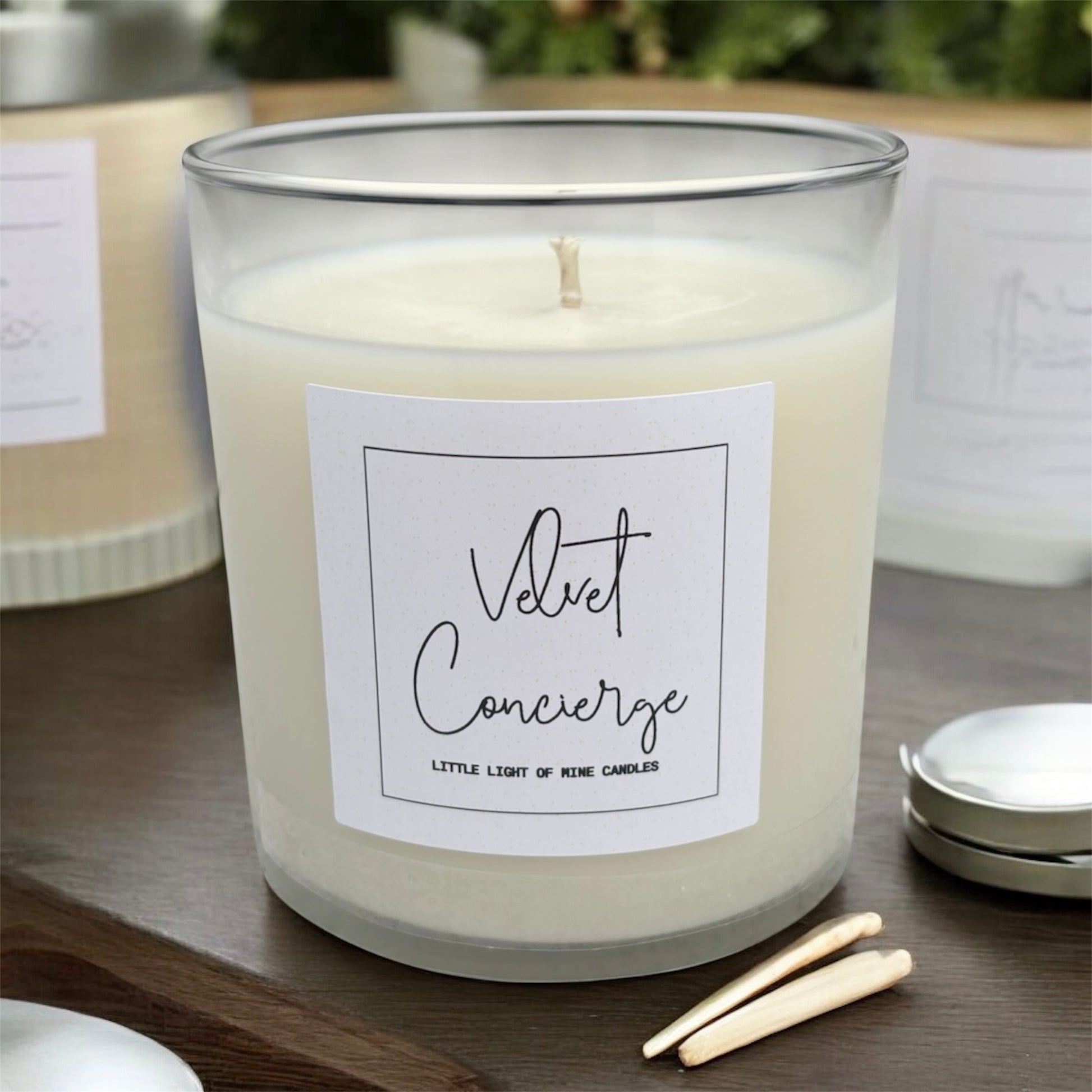 Wrap yourself in effortless luxury with Velvet Concierge’s, a scent inspired by the timeless elegance of a five-star stay. Bright notes of zesty lemon and luminous bergamot open the experience, refreshed by a cool ocean breeze that feels crisp, clean, and irresistibly inviting. At the heart, soft jasmine blooms with a refined floral touch, bringing balance and sophistication. The fragrance settles into a warm, seductive base of smooth musk and glowing amber, lingering like silk against the skin and the quiet comfort of personalized, impeccable service